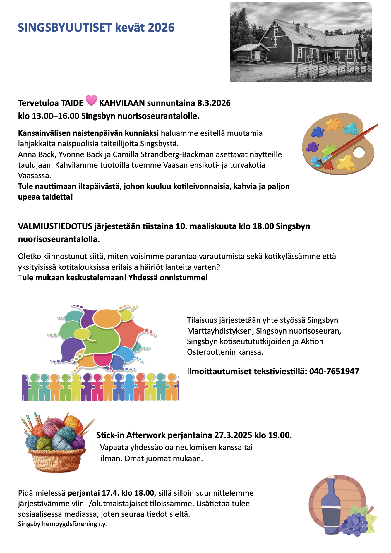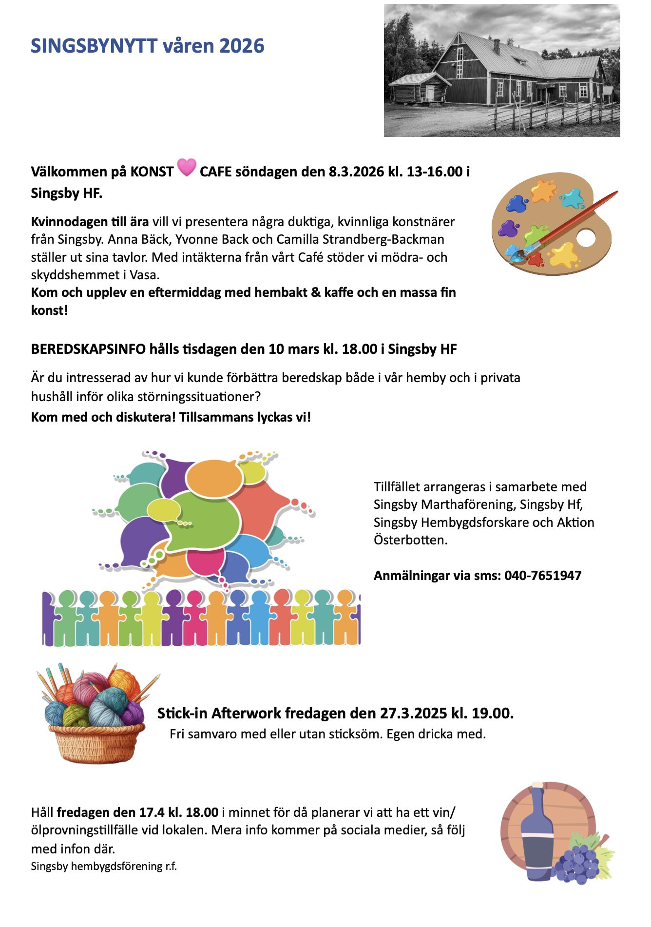 Fredagen den 17.4 kl. 18.00 ordnas ett vin/ölprovningstillfälle vid lokalen.