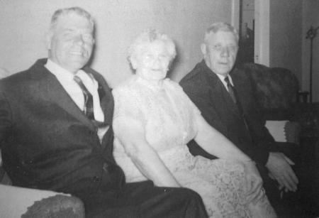 T.h. 'Hansos' August Åkerman i USA med familj. Född 1886. Emigrerade till Amerika, Californien 1902, dog där 1969. Enligt registrering 1950 jobbade han på ett sågverk i Fort Bragg, Mendocino, Californien. Han besökte hembyn på 1930-talet tillsammans med hustrun Dina Maria och en av döttrarna, förmodligen Helen Adelia.