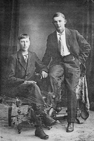 Hugo Edvard Bäck (th.) (1900-1991) tillsammans med ungdomskamraten Einar Ernfrid Ström (1903-1986) från "Adamas"-delen av Lax hemman. Foto från 1919.