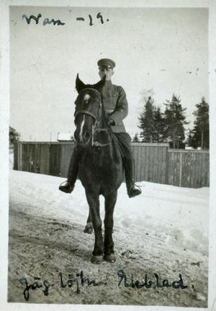 Foto av Jägarlöjtnant Magnus Oskar Severin* Ekblad (1887-1921) från Vasa, född i Sundsvall. Blev senare befordrad till Jägarkapten. Mördades i Åbo.