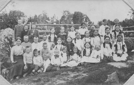Lärarinnan Jenny Kristina Nääs (1889-?) från Södra Jungsund längst till vänster.
