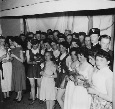 Efter finalen vid revyn "Vår-vision" 1957. Hela ensamblen, i mitten Viola Lithén.