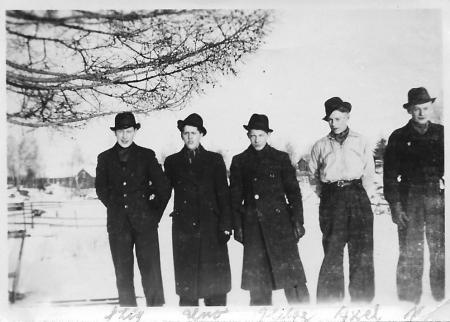 Stig Ström, Uno Hjerpe, Helge Lax, Axel Hjerpe, Alvar Lithén. Foto från 1949.