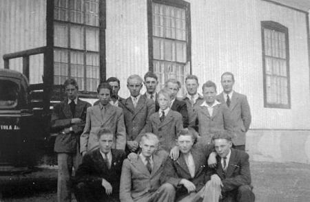 Stående från vänster: Axel Hjerpe, Gösta Lithén, Gideon Hjerpe, Almer Lithén, Helmer Lithén, Arne Bäck, Gunnar Lax, Paul Sabel, Paul Ström, Stig Ström.