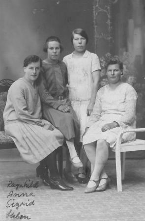 Ragnhild Linnéa Syring (1908-1930), Anna Alina Dahl 1909-1999), Sigrid Alice Dahl (1899-1934), Helen Viola Hjerpe (1908-1969)