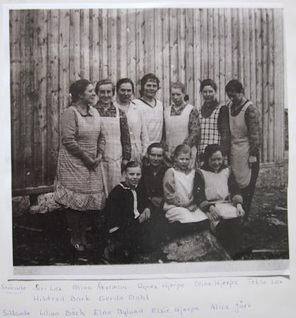 Stående: Siri Lax, Alina Åkerman, Agnes Hjerpe, Oline Hjerpe, Tekla Lax, Hildrid Back, Gerda Dahl.