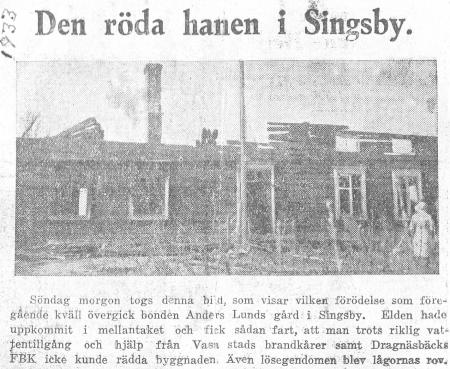 1933 den 27 maj brann Anders Lunds boningshus samt all lösegendom.