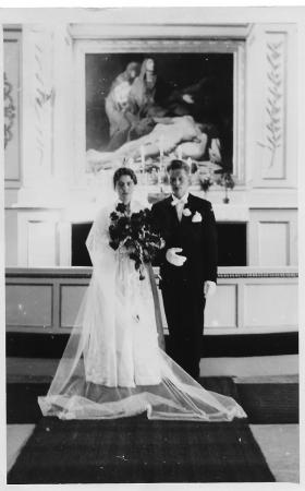 Daisy Veneda Margaretha* .Hjerpe (1934-2024) och Edvin Ingvald* Back (1931-2022) från Iskmo gifter sig 1957.