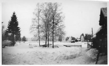 Utsikt från "Framsto"-Edvardas gårdsplan med Elis och Agnes Dahls byggnader i bakgrunden.