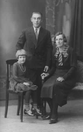 Herman Evald* Dahl (1905-1985) och hustrun Lempi Alina Lindroos (1905-1991) från Gerby med dottern Saga Marita* Dahl (1928-2008)