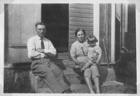 Oskar, Anna o Maj-Lis Olén på farstutrappan.