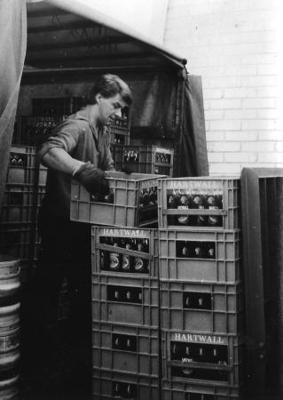 Bengt Syring lastar ölkorgar vid Hartwall i Dragnäsbäck.