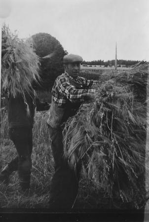Ernfrid Lax störar i Betsäng Väster om Maraback. I bakgrunden syns Valio Minks minkhus.