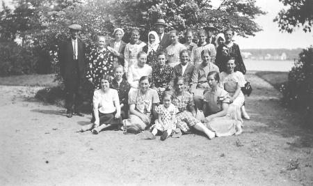 Översta raden från vänster: Mannen okänd, Battjis Betty Back, Agnes Dahl, Johanna Syring, Maria Lithén, Kalles Hannes Lithén, Edith Lithén, Miina (eller Ida Sundell), Kristian, Mili från Kärre, Gerda.