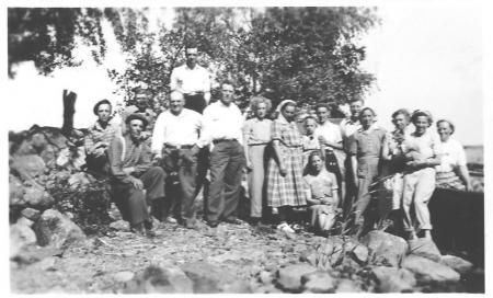 Inga Lithén, Bernhard Dahl, Emilia Lithén, Rudolfas Elsa Lax, Gunborg Lithén, Agda Dahl, sittande: Hildrid Elisabet Back (1907-1984).