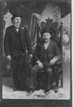 Sittande: Johannes (John) Karlsson Åkerman (Ness) (1857-1913) och äldsta sonen Johan Edwin* (1878-1938). Johannes var broder till Nysto-Otto Åkerman. Han dog i Fort Bragg, California, USA