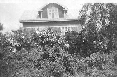 Arne Bäck i trädgården framför hemgården