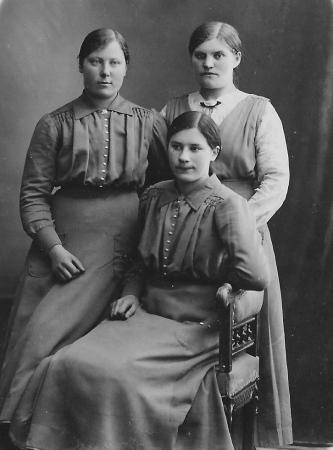 Stående till vänster: Edla Olivia Ström (1898-1978) gift med Johannes Evert* Granholm (1894-1942) från Munsmo. Till höger: Ida Karolina Ström (1866-1945) gift med Johan Snåfs (1865-?) från Munsmo. Sittande: Signe Alice Sabel (1898-1990) gift med Frans Norrgård (1899-1985) från Böle.