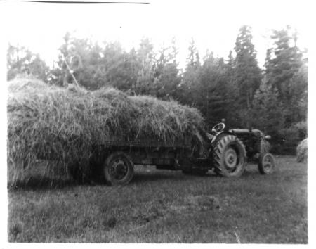 Höbärgning med Singsbys första traktor, en Fordson Major hos "Snofs"-Hugo Bäck.