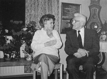 Eva Maria Weikar (1907-1996) och folkskolläraren Hilding Eliel Wikberg (1906-2002), född i Rangsby, på hans 90-årsdag.