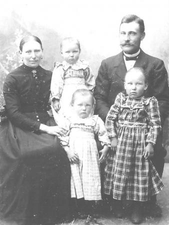 August Ström (1869-1935) och hustrun Maria "Adamas Mari" (f.Lax 1865-1944) med tvillingarna Edith Sofia (1898-1950) gift Lithén och Edla Olivia (1898-1978) gift Granholm i Munsmo, samt Ester Irene (1896-1974) gift Åkerman. (Foto fr. 1900).