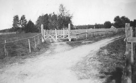 Infarten till Fridolf och Oline Hjerpes hus vid den s.k. Kattrumpan. Se också från annat håll. Där syns också flera av uthusen: Läs mera...