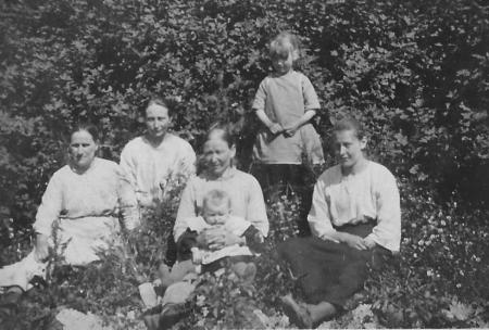 Från vänster: Ida Karolina Lax (1875-1960), gift Sabel, Ester Irene Ström (1896-1974), gift Åkerman, Maria Lax (Adamas Mari) 1865-1944), gift Ström, Edith Sofia Ström (1898-1950), gift Lithén.