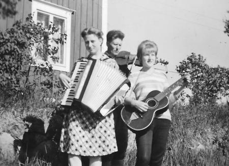 Christina Dahl på dragspel, hennes far Elis på fiol och kusin Iris Dahl på gitarr.