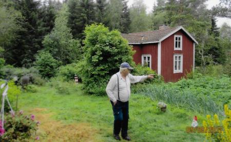 Kurt Burman från Koskö på gården vid Fransas i Kärre. Torpet i bakgrunden.