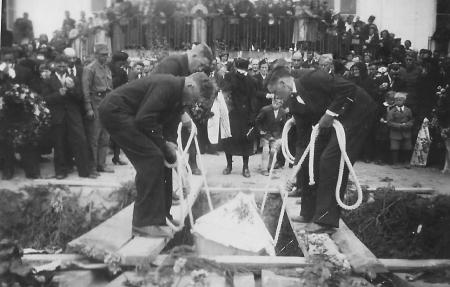 Kan eventuellt vara begravningen av Hugo Lithén som tillsammans med fyra andra omkom i granatkastarolyckan i Smedsby 1941.
