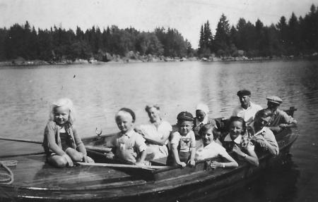 Från fören: Viola, Mikael och Gunhild Ström, Björn-Erik Lithén, Aina Ström, Siv Ström, Gunvor Lithén, Stig Ström, Alvar Lithén, Einar Ström