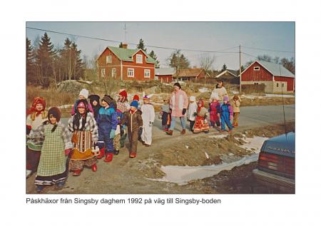 Påskhäxor på väg till Singsbyboden 1992.